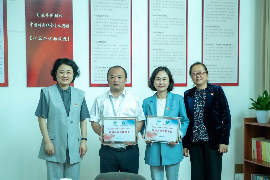 活动中,信息工程学院党委、马克思主义学院党委签署了结对共学共建协议,信息工程学院党委聘请马克思主义学院5名老师为习近平新时代中国特色社会主义思想研习班理论导师、青行阳明研习社实践导师、中共党史学习导师。李勤副校长、于立群副校长为“信息工程学院、马克思主义学院结对共学共建单位”授牌。