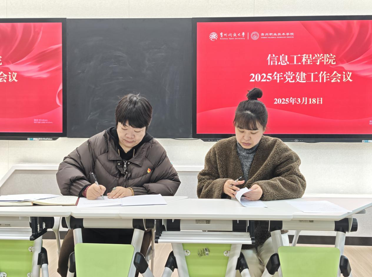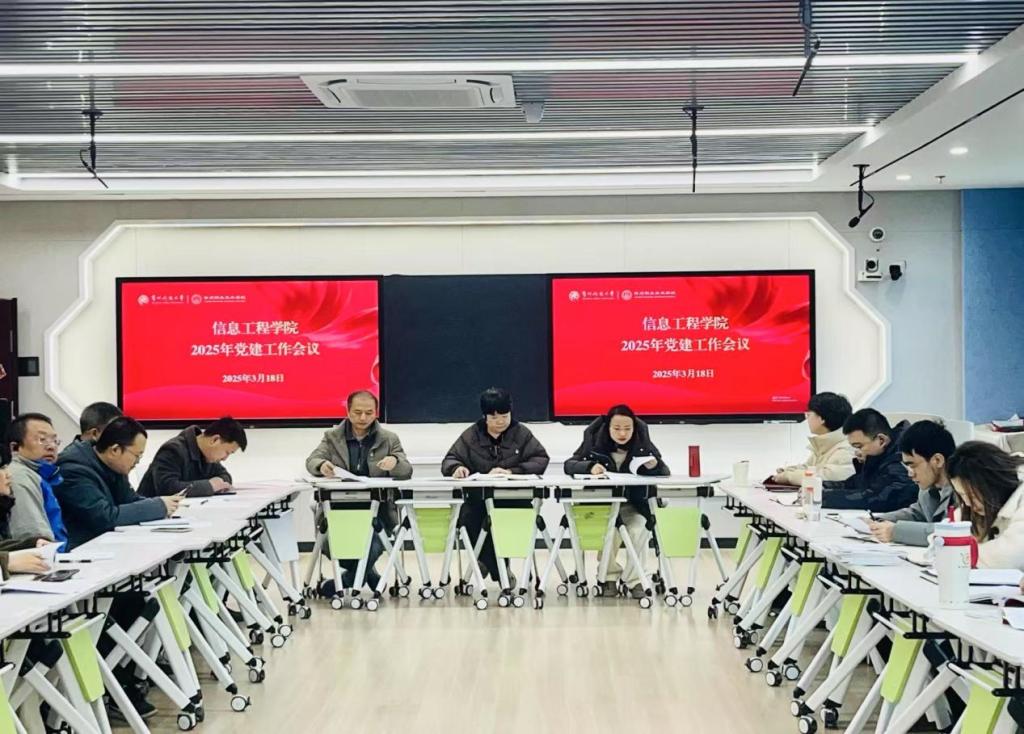 3月18日,信息工程学院在知行楼三楼智慧教室召开2025年党建工作会议。学院全体教师党员、学生党员代表参加会议,党外教师代表列席会议。会议由学院党委副书记戴明辉主持。