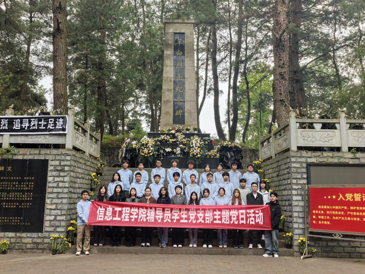 为深切缅怀革命先烈不朽功勋,传承红色基因、强化使命担当,近日,信息工程学院辅导员学生党支部组织党员教师代表、学生代表,前往观山湖区烈士陵园,开展“缅怀革命先烈,传承红色基因,砥砺奋斗初心”主题党日活动。