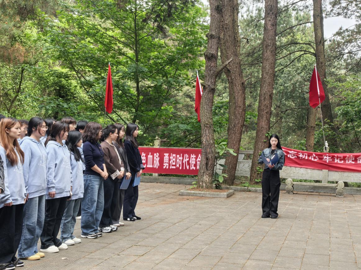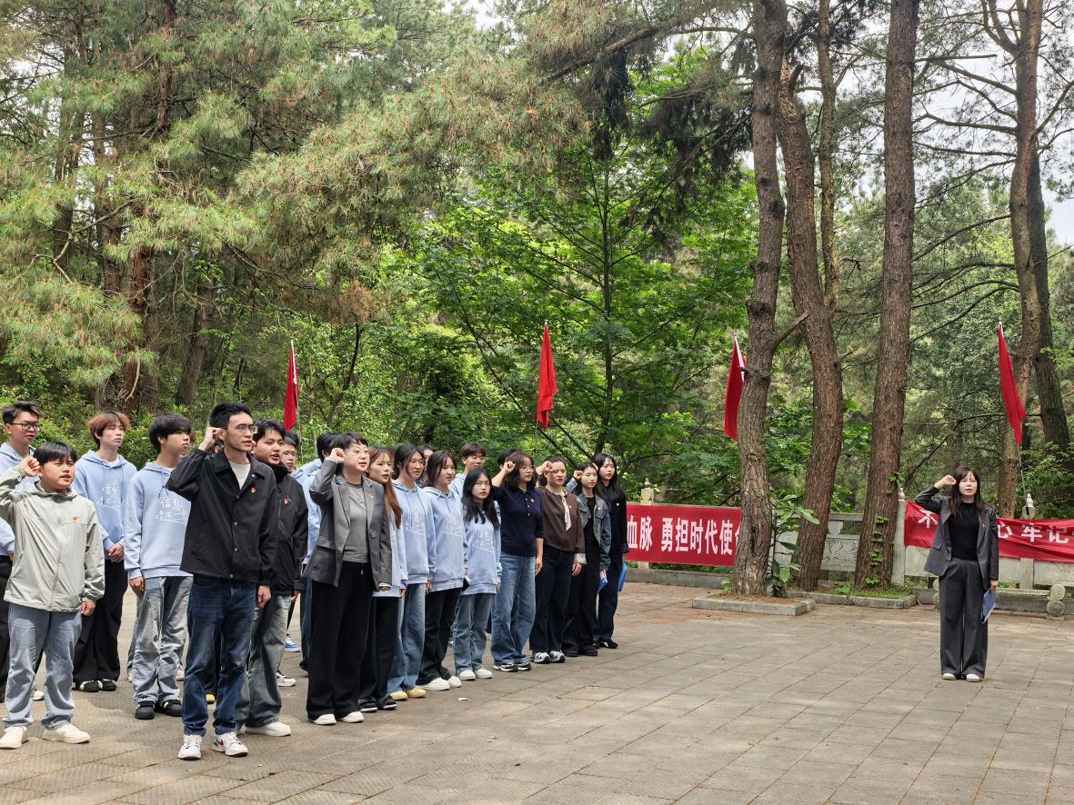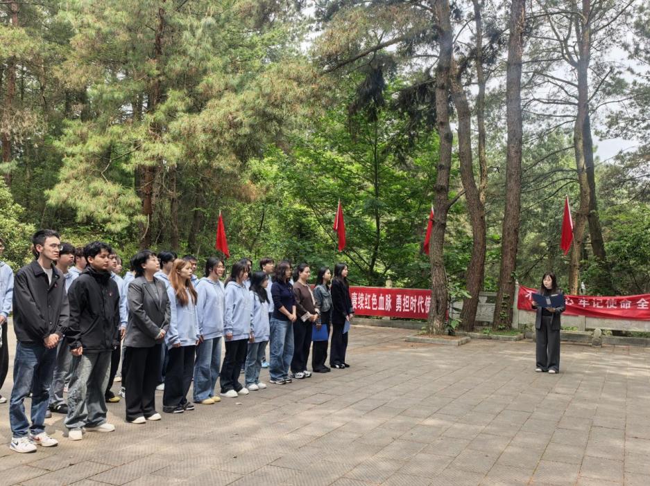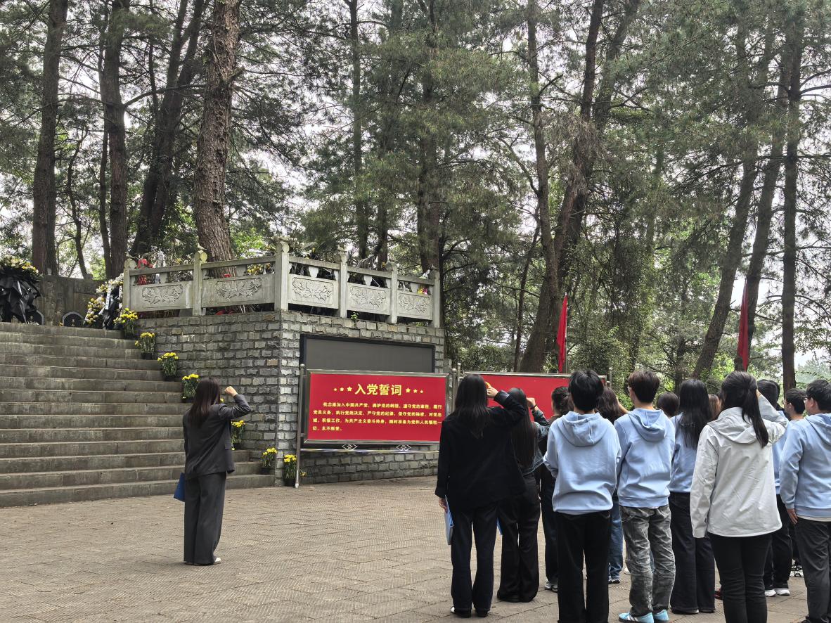 活动现场,松柏苍翠、庄严肃穆。在烈士纪念碑前,师生代表敬献花圈、整理挽联,集体默哀一分钟,向长眠于此的英烈致以最崇高的敬意与最深切的哀思。党员教师代表结合陵园厚重历史,现场讲述烈士们的英雄事迹,带领大家重温那段峥嵘岁月。学生代表立足青年学子身份,围绕“继承先烈遗志 勇担时代使命”表态,承诺将以先烈为榜样,坚定理想、勤学苦练,把爱国情、强国志、报国行融入日常学习生活。活动尾声,全体党员高举右拳、庄严宣誓,重温入党誓词,铿锵誓言在陵园上空久久回荡,进一步筑牢信仰之基、强化党员担当。
