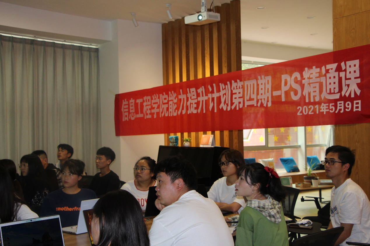 为深入学习贯彻习近平总书记重要讲话精神,切实落实立德树人根本任务,着力培养德智体美劳全面发展的社会主义建设者和接班人,2021年5月9日,信息工程学院第四期能力提升计划——PS功能精通课在校图书馆易班发展中心开展。