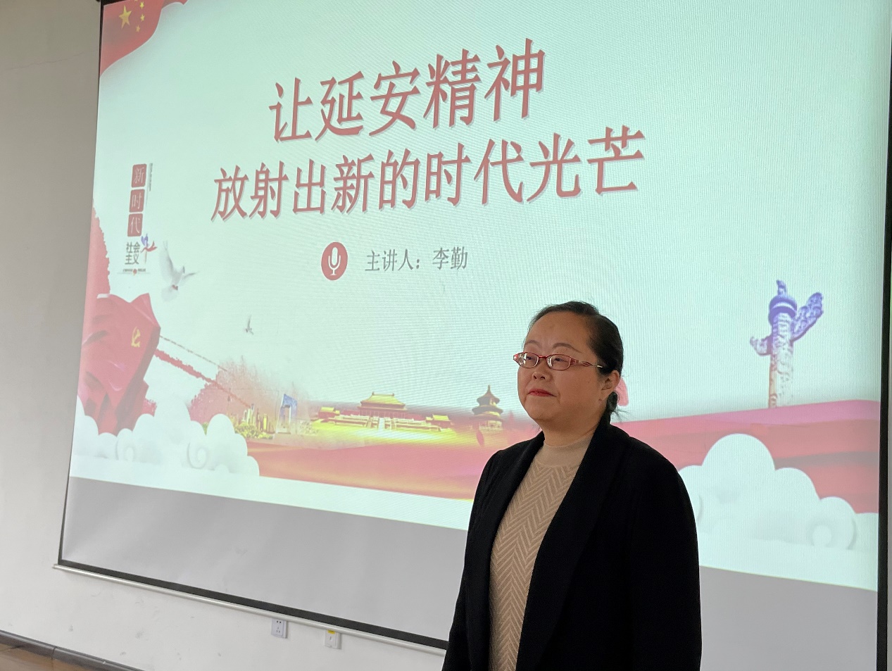 在《回延安》的革命歌声中,李勤副校长以《让延安精神放射出新的时代光芒》为题,从“延安精神形成的历史条件”、“延安精神的科学内涵”和“让延安精神放射出新的时代光芒”三个方面向大家诠释了“延安精神”在中国共产党历史上的重要地位、重大历史意义和在新时代蕴含着的丰富而深刻的时代价值。李勤副校长在宣讲中指出,学习延安精神,一是要始终坚定正确的政治方向;二是要始终坚持“实事求是、解放思想”的思想路线;三是要始终坚持全心全意为人民服务的根本宗旨;四是要始终保持自力更生、艰苦奋斗的创业精神。整场宣讲主题鲜明、深入浅出、引经据典、真诚亲切、发人深省,让大家重温了党在延安的艰苦奋斗岁月,加深了对延安精神的认识和理解。