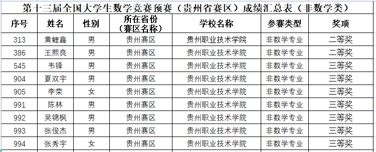 据悉,第十三届全国大学生数学竞赛预赛(贵州赛区)非数学类组有来自贵州大学、贵州师范大学等30余所省内高等院校的5268名同学报名参赛,全国使用统一试题,本专科学生同考一套试卷,我校是贵州省赛区唯一一所专科院校参赛。
