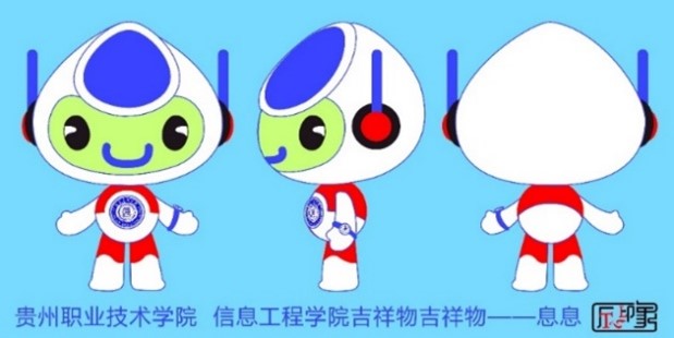 寓意:该吉祥物的名字为信息超人,以电脑为创意核心,将电脑拟人化,作为原型,突出信息工程学院;配以生命和活力的海蓝色。他的斗篷运用了红色,展示着信息学子的积极乐观、精神向上的精神面貌。