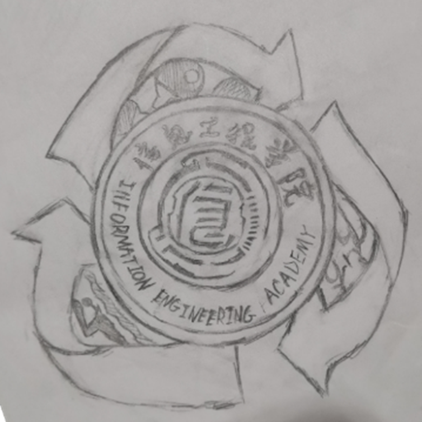 寓意:希望信息工程学院同学们以后在智能AI方向发展越来越好;下身由蓝白色调组成,极致简约风格,给人的感觉就是欣赏蓝天白云一样,让人心情愉悦,在敲代码的枯燥乏味的生活中增加一丝慰藉。
