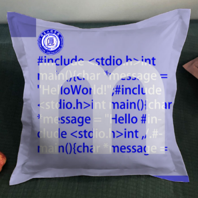 寓意:抱枕的设计主要元素是m,m代表moral,中译为德,信息学院的育人理念为“立德树人·德技并修”。