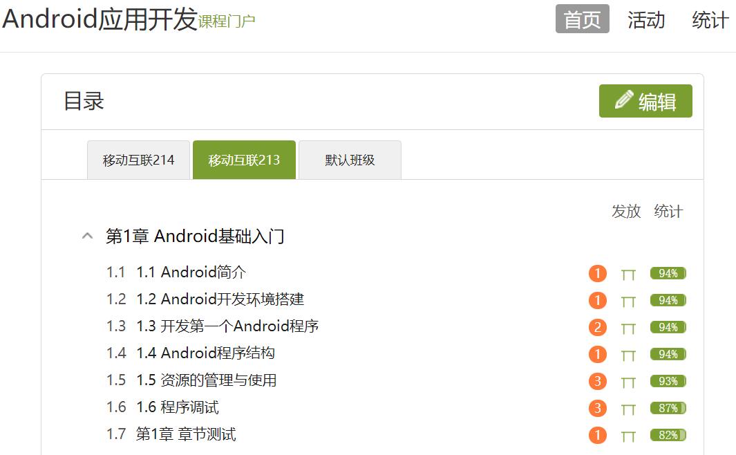 图 7 《Android应用开发》课程学习通任务点学习情况