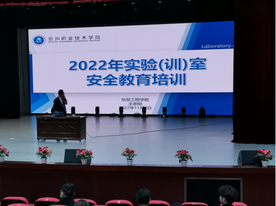 为确保2022级新生在实验(训)室的用机安全以及用机规范,我院于2022年11月4日开展了实验(训)室安全教育培训讲座,由王崇刚副院长给全体教职工和2022级新生代表讲解。