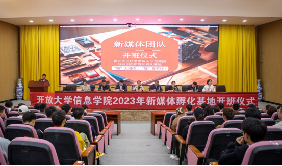 5月12日,信息工程学院与云观集团联合创办的数字新媒体孵化基地第一期开训仪式暨首次培训在行政楼九层会议室举行。学校宣传部副部长、院党委书记姚楠,学院党委副书记、院长卿云,学校教务处副处长马婷婷、招就处副处长张硕、学院副处级专职组织员彭亮亮等领导,云观集团执行董事严乐耘、新媒体事业部总监刘洋、公共事业部经理张世佳和项目相关成员,以及报名参训学生100余人参会,活动由信息工程学院袁琳琳教授主持。
