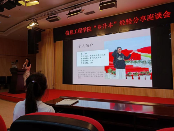 耕耘更知韶光贵,不待扬鞭自奔蹄。为进一步促进优良学风、充分发挥朋辈示范引领作用,切实帮助同学们了解专升本考情、做好对未来的学习规划,信息工程学院于6月6日下午在图书馆报告厅组织开展了“专升本”经验分享会。学院2021级、2022级100余名学生参与了分享。