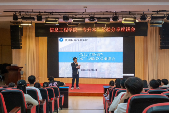 本次分享会邀请了四位升本成功的优秀学长学姐回校传授学习经验。他们在今年的专升本考试中分别升本至贵州师范大学、贵州民族大学、遵义医科大学、贵州黔南经济学院。
