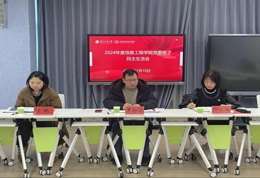 按照学校党委安排,2025年1月10日,信息工程学院党委在知行楼3楼智慧教室召开了2024年民主生活会,学校党委副书记罗玲龙同志、督导组组长邓咏梅同志出席指导并作点评,学院党委书记姚楠主持会议,党委班子成员参加会议,教师党员代表、党外人士代表列席会议。