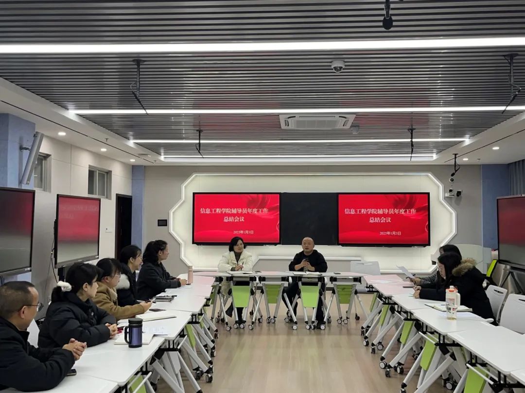 回顾过去,展望未来,2025年1月3日,信息工程学院在知行楼3楼智慧教室召开了2024年度辅导员工作总结会议。学院党委书记姚楠、副处级专职组织员彭亮亮和全体辅导员参加会议。