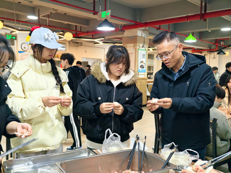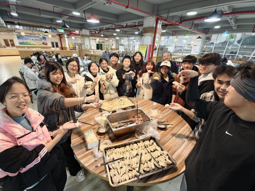 此次活动以传统节日为载体,搭建了师生互动交流的温暖平台,是学院推进文化育人、增强学生归属感的重要实践。同学们热情高涨,有的认真跟着学习传统包法,有的发挥创意包出造型各异的饺子,欢声笑语不断。来自山东的新生李同学感慨道:这是我第一次离家过冬至,原本还有点孤单,没想到学院会特意组织这样的活动,和老师、同学们一起包饺子,吃着热气腾腾的饺子,感觉就像在老家和家人团聚一样温暖;来自云南的张同学说,通过这次活动,我不仅学会了包饺子,更感受到了学院的用心和关怀,对这个“第二故乡”也多了一份归属感。