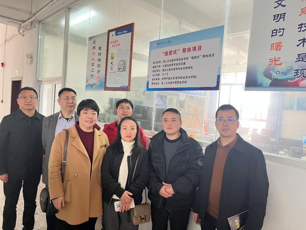 务川中等职业学校为我校“组团式”教育帮扶受援学校之一,目前我院冯明星老师在该校参与帮扶工作。为进一步贯彻落实中组部及省教育厅关于国家乡村振兴“组团式”教育帮扶有关文件精神和要求,加强两校计算机专业中高职贯通人才培养和专业建设,推动务川中等职业学校计算机专业高质量发展,提升两校教育结对帮扶实效,学校已完成立项务川中等职业学校计算机应用实训室援建项目,并于学校会议室举行了授牌仪式。