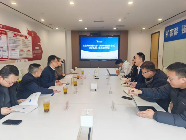 为深入贯彻落实教育部“访企拓岗促就业”专项行动要求,深化产教融合、校企合作,2026年2月5日,贵州职业技术学院党委常委、副校长周勇率信息工程学院教师团队,前往贵阳市高新区开展访企拓岗活动。 调研团队来到贵州中汇科技发展有限公司。企业拟与学校围绕订单班人才培养、高质量数据集建设深化校企合作。周勇指出,校企双方要资源整合、协同推进、双向赋能,以真实项目赋能学生专业成长与就业竞争力提升,实现人才培养与产业需求无缝衔接。