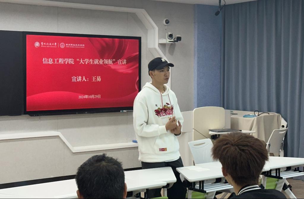 为贯彻落实党的二十届三中全会精神,深入实施就业优先战略,按照团省委关于促进大学生就业工作安排,充分发挥学院团组织优势,10月29日,信息工程学院组织开展了“就业领航”宣讲会。本次宣讲会邀请到了学院2019级大数据技术与应用专业学生王易为大家开展宣讲,信息工程学院团学组织成员及全体团支书共70余人参与了宣讲。