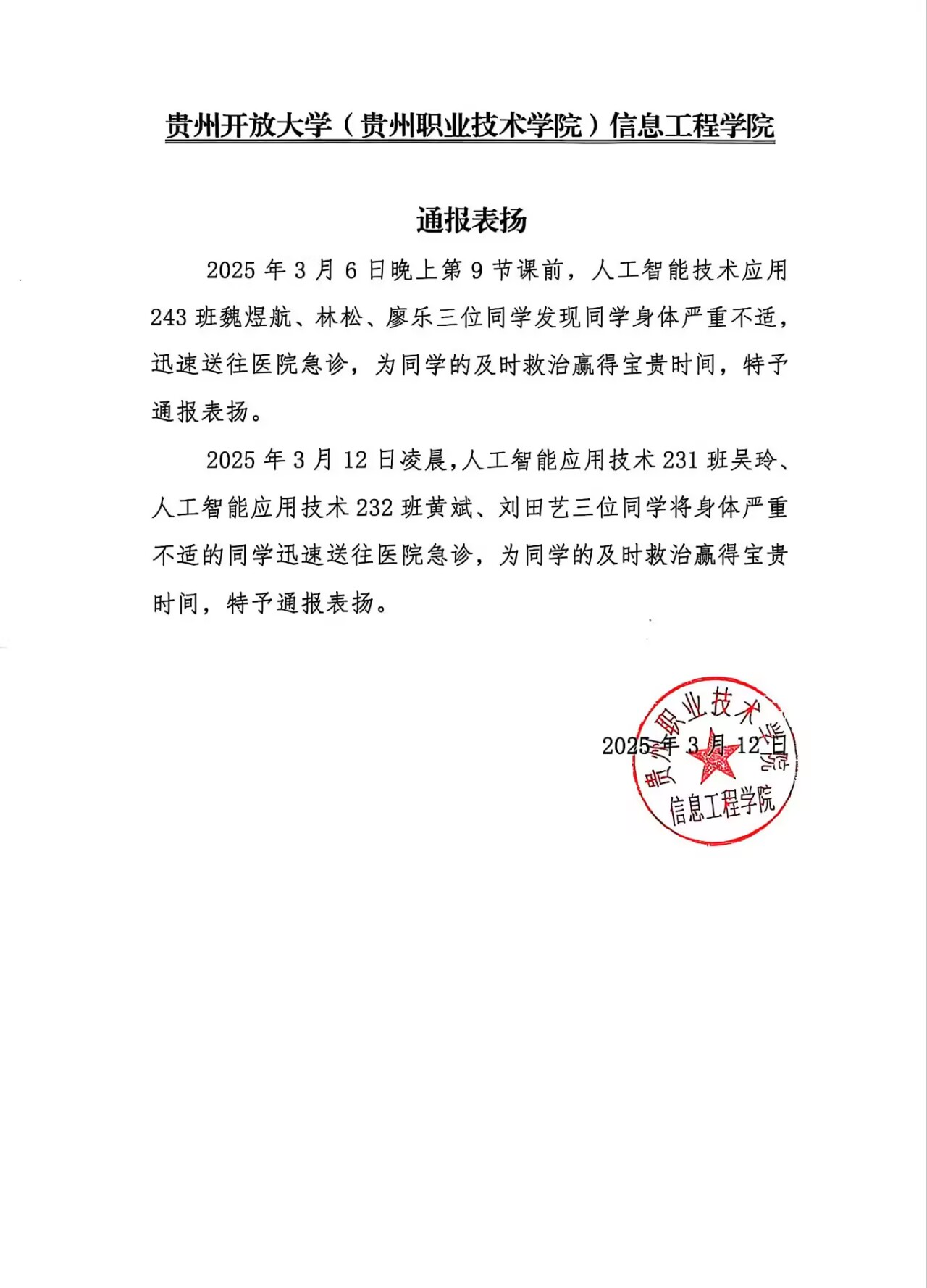 通报表扬