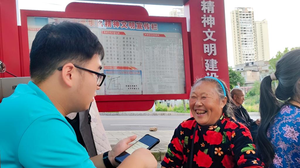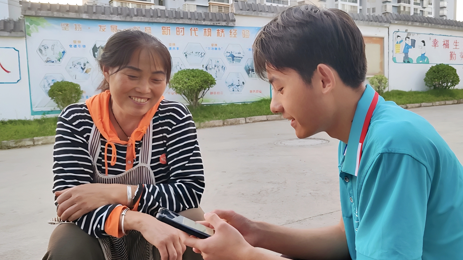 采用“2+1”入户模式(2名志愿者+1名网格员):技术上,手把手帮67位老人装“国家反诈中心”APP,用大字体、慢语速演示功能,贴操作便利贴;情感上,陪老人唠家常,帮独居老人视频连线子女、学唱山歌;活动后开展2次回访,赠印顺口溜的帆布包,53位老人(81.8%)能独立操作举报功能,超预设目标。