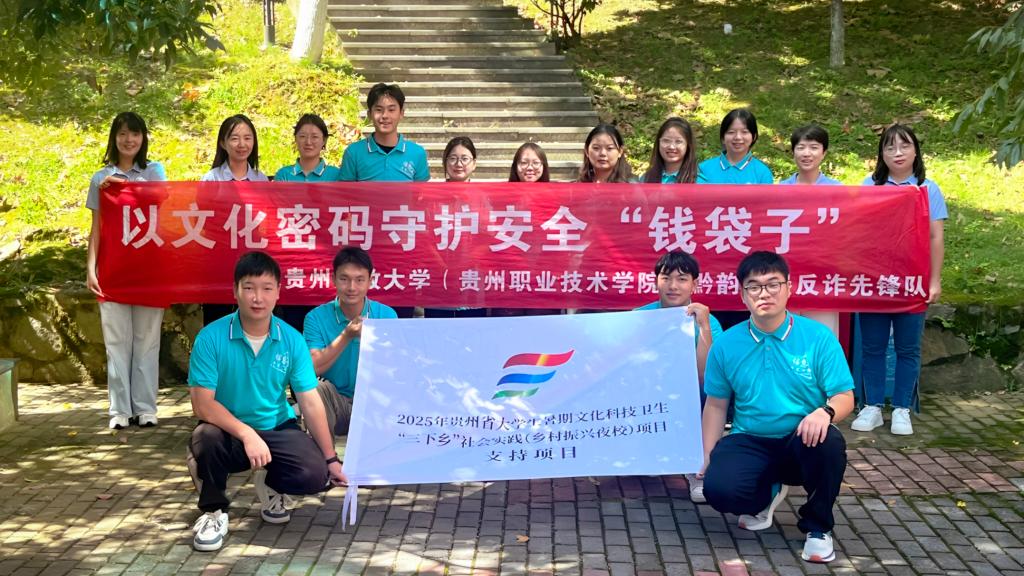 2025年,贵州开放大学(贵州职业技术学院)信息工程学院罗志程、岳廷颖、邓静及郭晓玲4名专职辅导员,联合平坝区团委、天龙村、塔南社区、信用社及屯堡地戏传承人,带领12名同学,启动“以屯堡文化密码守护安全‘钱袋子’”暑期三下乡实践项目。项目打破“高校单向输出”模式,以国家级非遗屯堡文化为思政桥梁,将地戏、方言顺口溜与反诈知识、思想引领融合,既推动师生在基层服务中实现思政认知升级,又助社区居民借文化共情筑牢思想防线,让非遗文化在“守家护国”新使命中焕发生机。